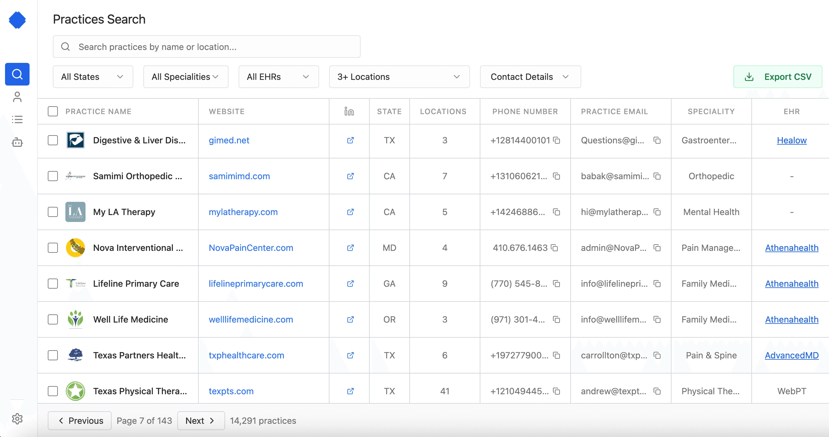 We setup highly targeted campaigns based on contact role, speciality, size and even EHR